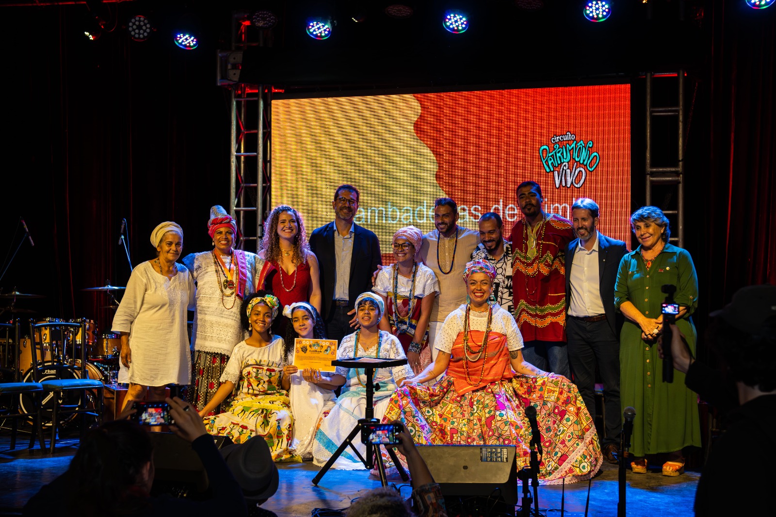 Na segunda-feira (15/12), o Clube do Choro foi palco de uma noite histórica. O Instituto Rosa dos Ventos reuniu dezenas de ialorixás, artistas e detentores de saberes e manifestações tradicionais da nossa cultura para anunciar o lançamento do Circuito Patrimônio Vivo, que consiste em uma agenda de ações e projetos robustos para a preservação e valorização desses bens tão importantes para nossa identidade. O evento também contou com representantes de instituições ligadas à cultura e ao patrimônio.