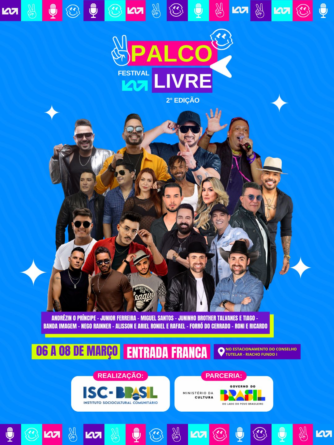 O Riacho Fundo I vai receber três noites especiais dedicadas à música e aos talentos do Distrito Federal. Nos dias 6, 7 e 8 de março, o estacionamento do Conselho Tutelar será palco do Festival Palco Livre 2026 – 2ª Edição. A entrada é gratuita.
